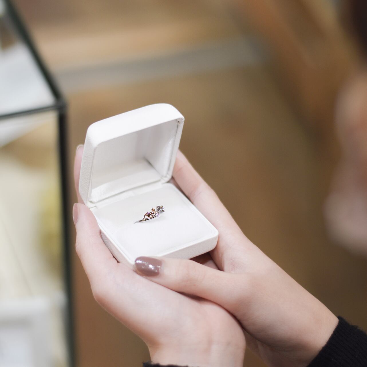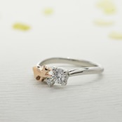 愛らしい猫がダイヤモンドに興味津々!遊ぼうとしている様子を模った‟猫エンゲージリング”です。自社工房にて職人が1点づつ手作りしております。